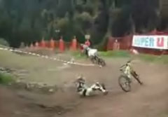 Наверно он так бегом всю гонку выиграл.