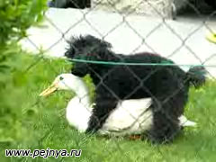 Пудель решил трахнуть утку.